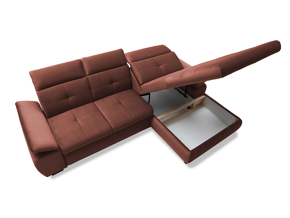 Colțar extensibil modern cu ladă pentru depozitare, maro - model WIND