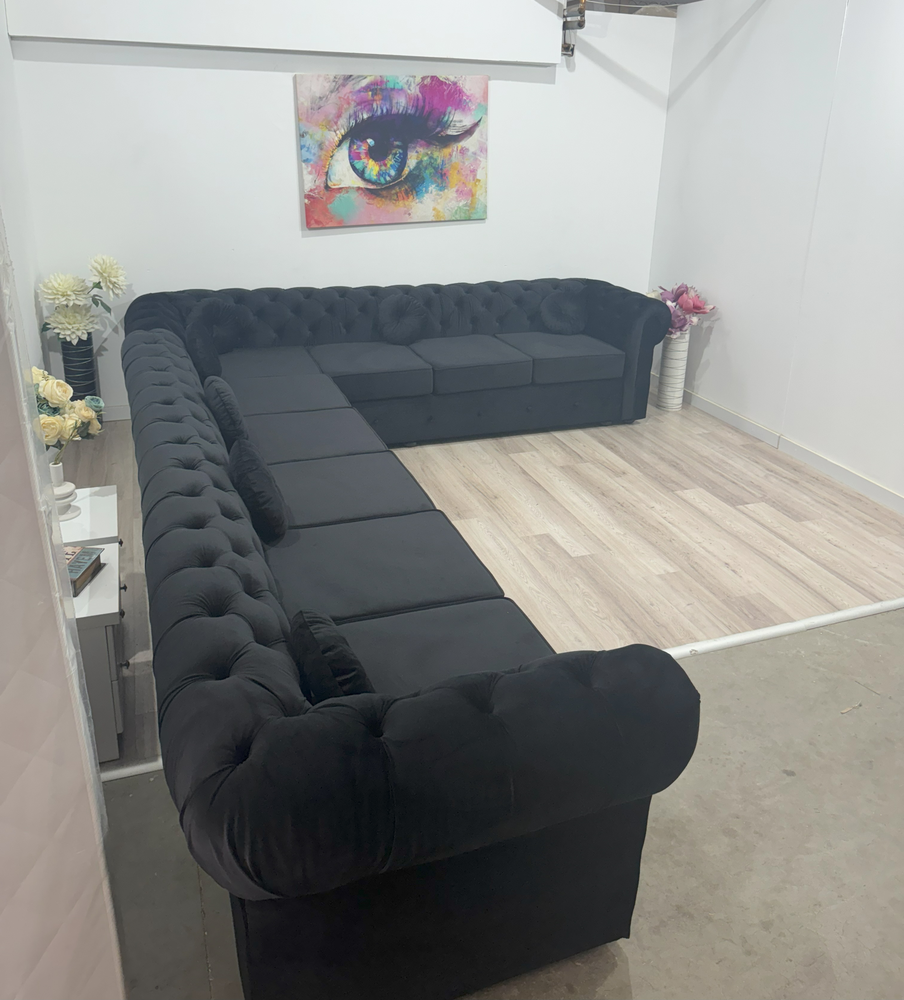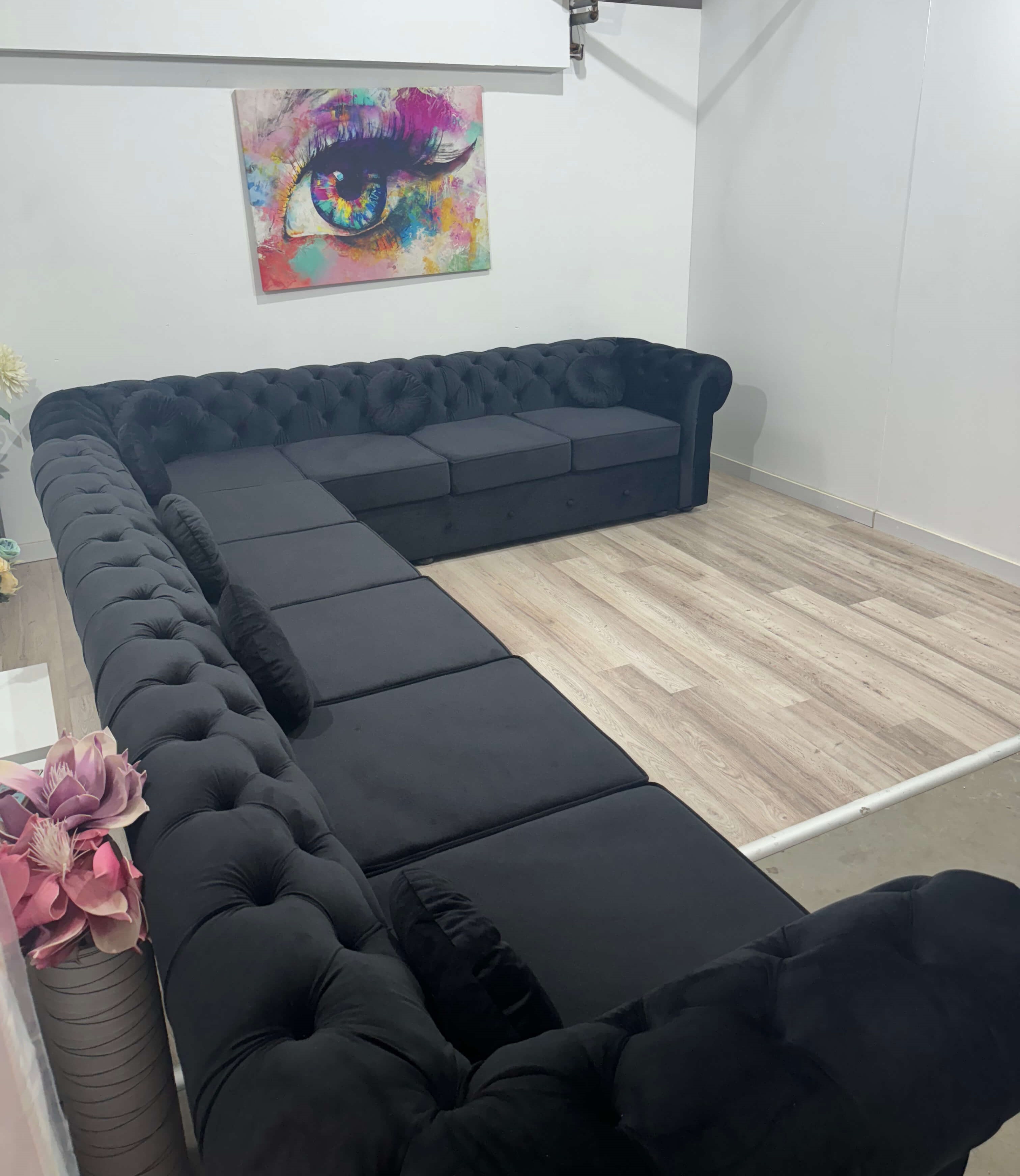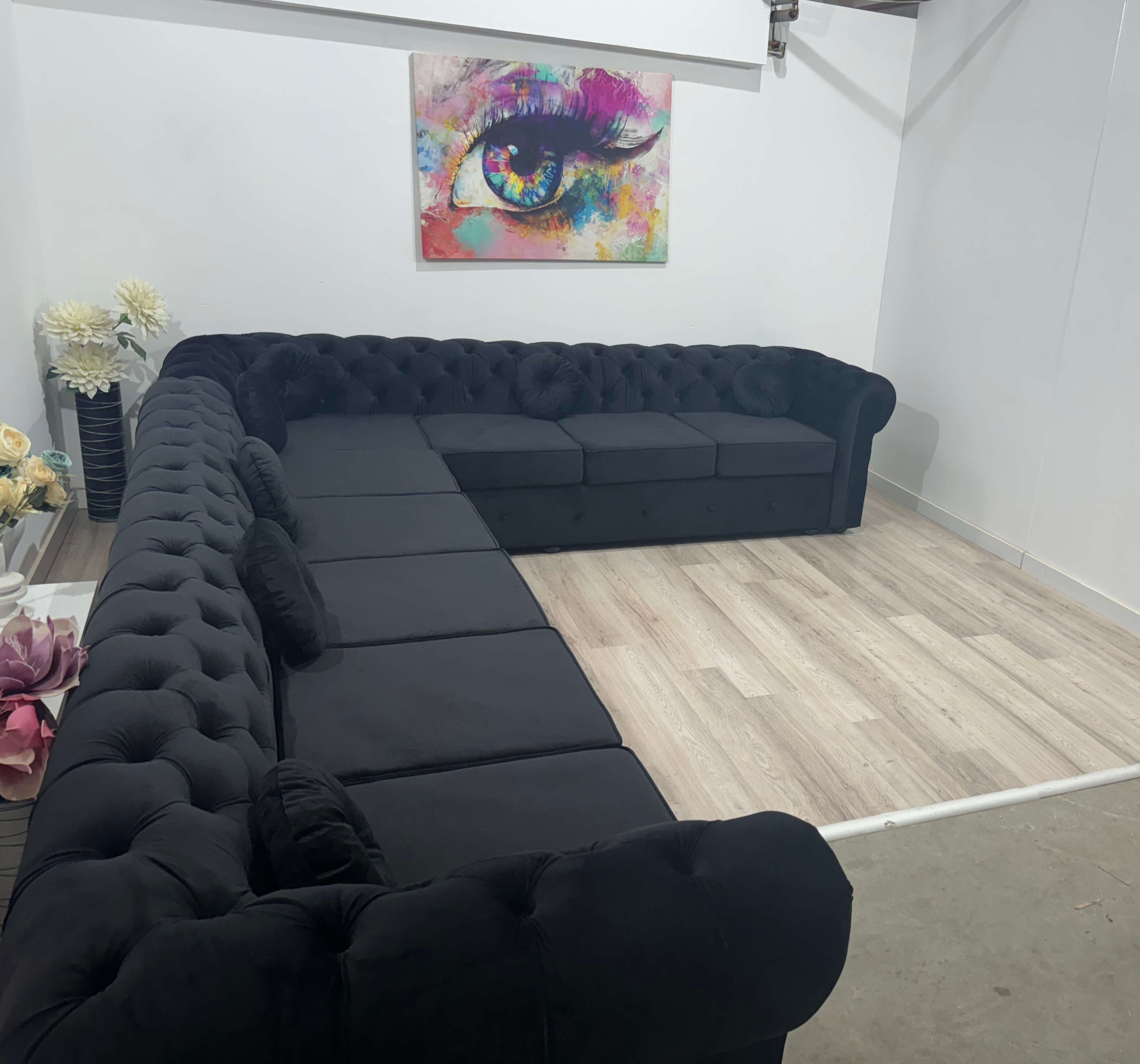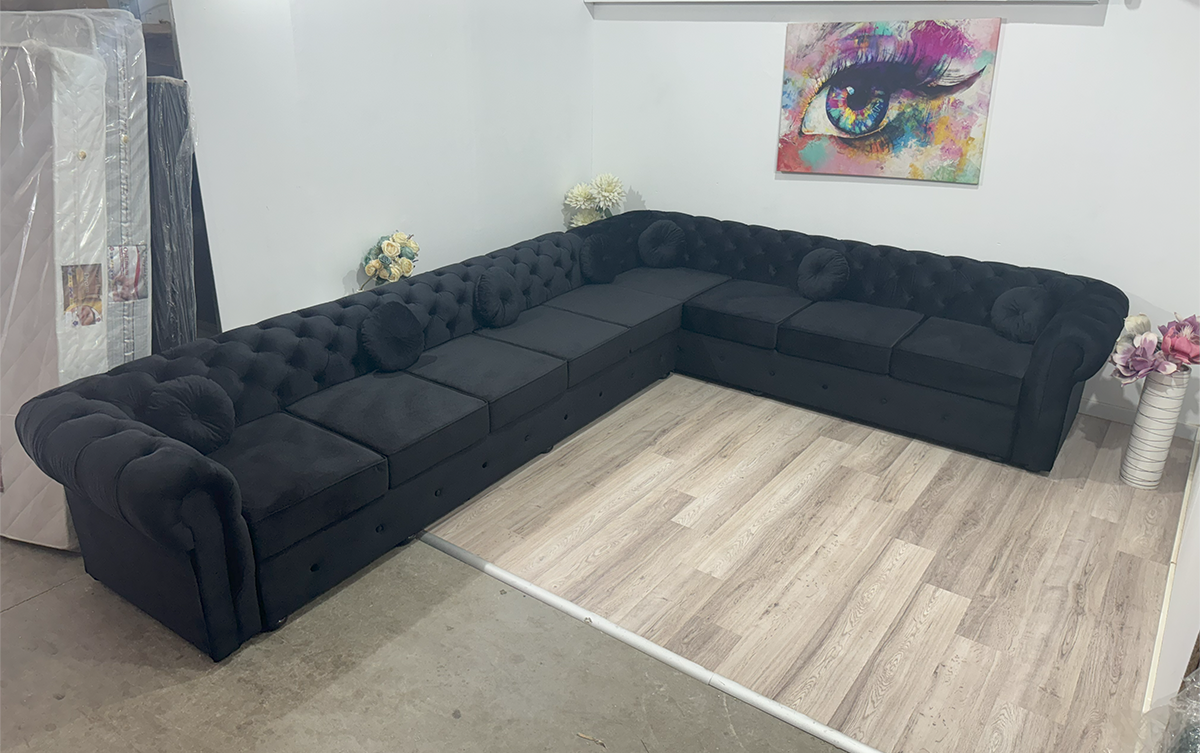 Colțar negru stil Chesterfield, ideal pentru livinguri spațioase - model CHESTERFIELD